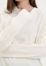 Базовый свитер Milk в молочном цвете с японским плечом — идеальное сочетание комфорта и элегантности. В составе мягкая шерсть ягненка и вискоза, что делает его приятным на ощупь и уютным в носке. Идеальная длина и комфортная посадка подходят для любого типа фигуры. Этот свитер — универсальная основа демисезонного гардероба, легко сочетается как с джинсами, так и с классическими брюками.