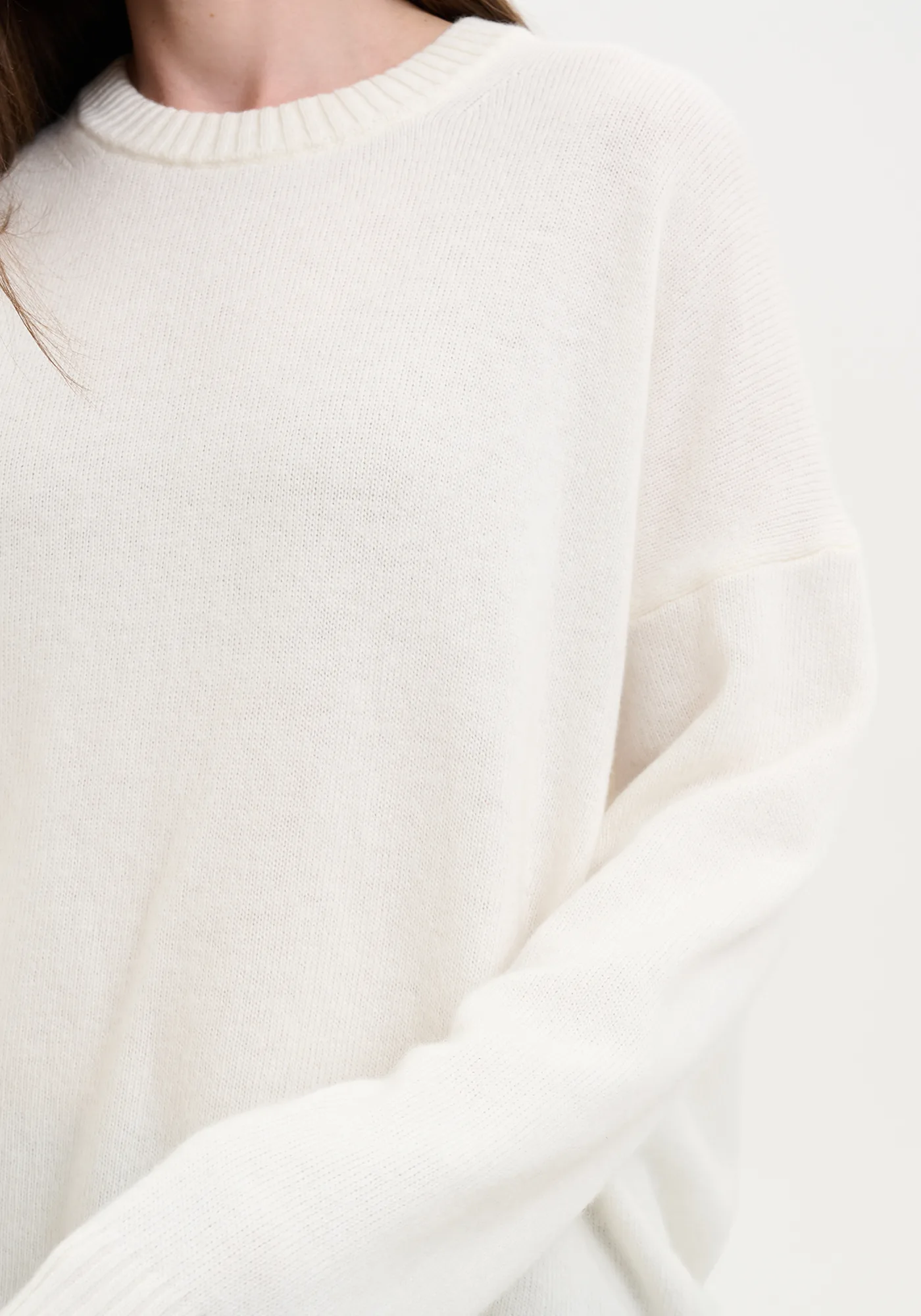Базовый свитер Milk в молочном цвете с японским плечом — идеальное сочетание комфорта и элегантности. В составе мягкая шерсть ягненка и вискоза, что делает его приятным на ощупь и уютным в носке. Идеальная длина и комфортная посадка подходят для любого типа фигуры. Этот свитер — универсальная основа демисезонного гардероба, легко сочетается как с джинсами, так и с классическими брюками.