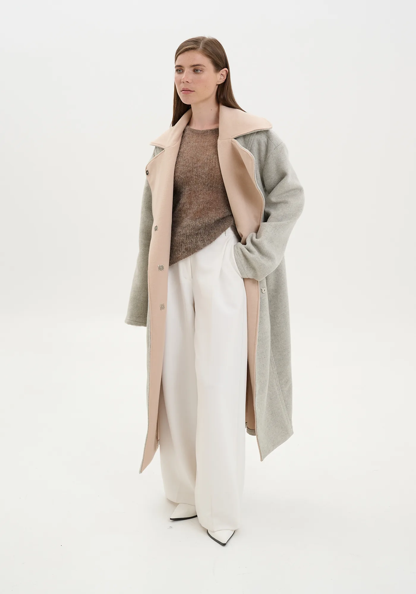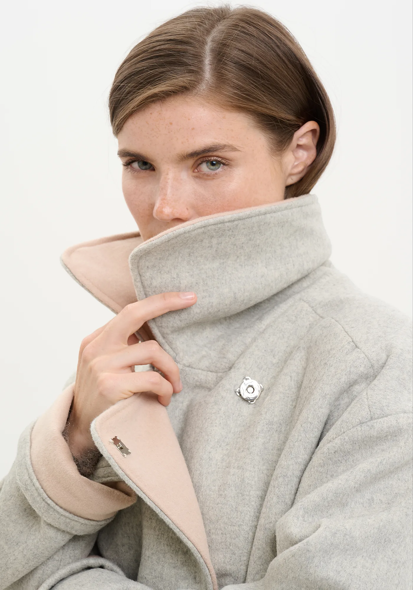 Пальто Flair — это выбор для тех, кто ценит утонченную роскошь и оригинальность. Архитектурный крой, эффектный двойной ворот, плавная линия плеча и тщательно продуманные детали, такие как удобные карманы и безупречные закрытые швы, создают идеальную гармонию комфорта и стиля. Дополните образ широким шарфом из той же ткани для завершения впечатляющего лука.